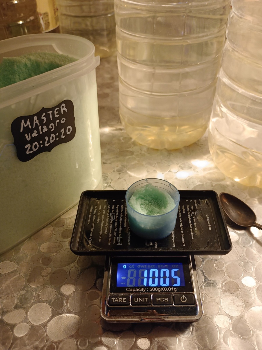 Пропорция 10 грамм на 10 литров воды. Это 3 чайных ложки с горкой.