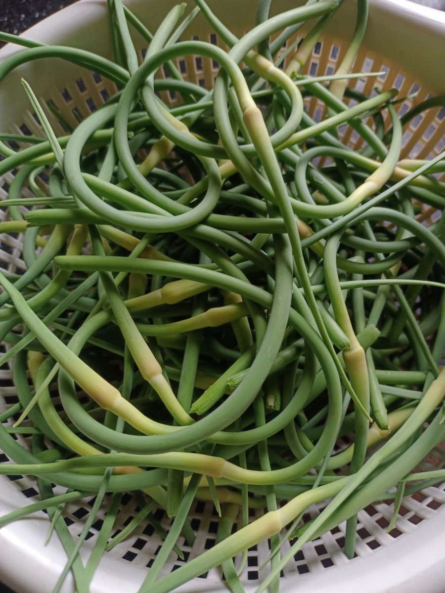Верхушки отрываем и поджариваем с солью и маслицем и потребляем как снеки. Остальное в блендер да готовим чесночную соль.