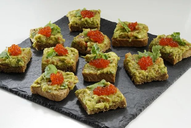 Самый простой способ, как из утреннего авокадо-тоста сделать праздничное угощение, — нахлобучить на бутерброд с гуакамоле шапку красной икры. В дизайне тут тоже отлично срабатывают ассоциации с зеленой елочкой. Врожденная сливочность позволяет авокадо заменять в бутербродах сливочное масло, избегая избыточного употребления животных жиров, из-за чего, собственно, авокадо-тост и получил бешеную популярность. Миллениалы, для которых такие вещи крайне важны, останутся довольны. Только не забудьте хорошенько сбрызнуть растертую мякоть авокадо лимонным соком — иначе она утратит свой «ацтекский зеленый» и посереет задолго до подачи на стол.