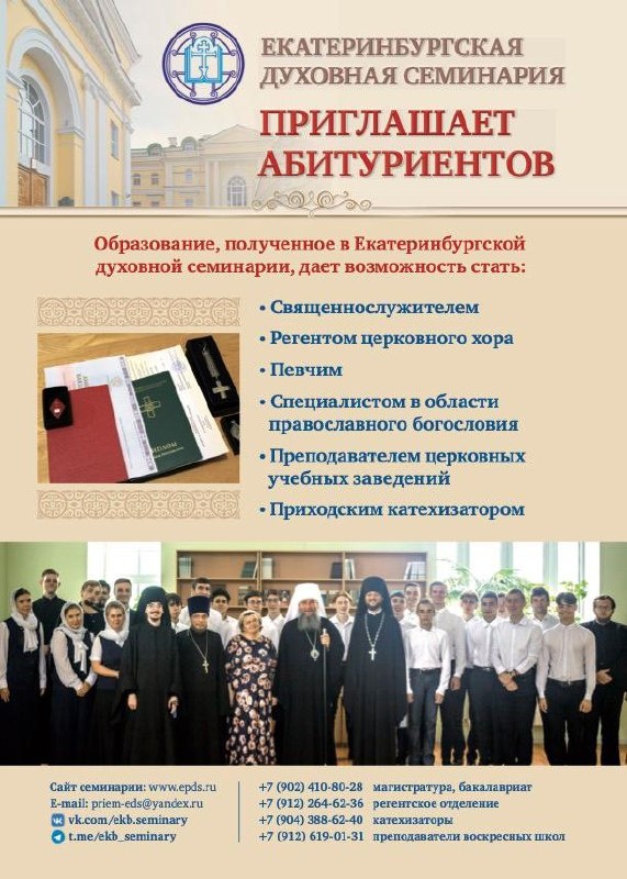 Екатеринбургская духовная семинария приглашает на обучение Подробнее