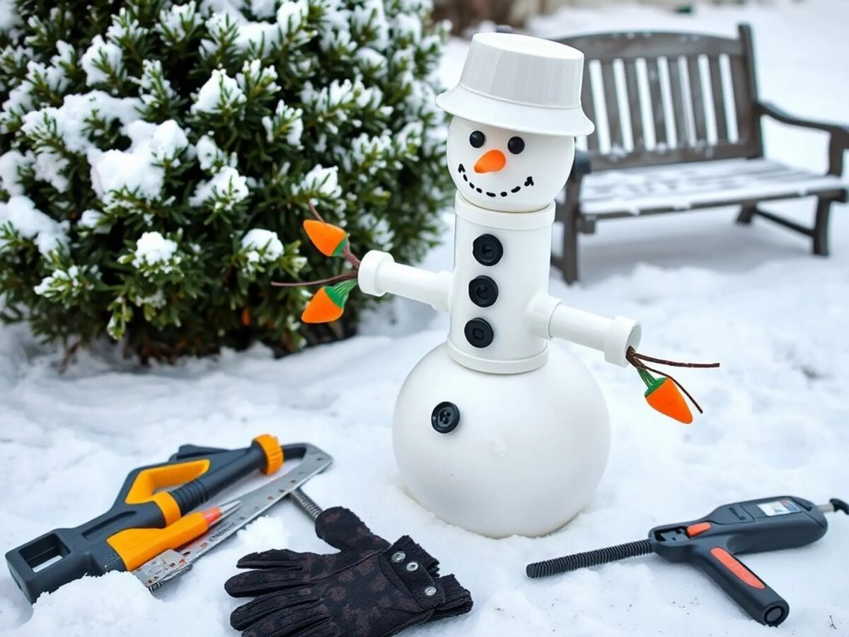 Знакомая история? Выпал снег, дети слепили снеговика во дворе – а через неделю он безнадёжно оплыл или вовсе растаял. А что если создать снежного стража, который простоит весь сезон и не боится оттепели? Да ещё и с фонарём внутри заиграет вечером? Сейчас расскажу, как из обычных сантехнических труб собрать душевного снеговика, который станет хитом вашего зимнего сада. Когда впервые увидела таких снеговиков у соседки, подумала – гениально просто! Трубы легче дерева, дешевле металла, и им не страшны ни дождь, ни мороз. В прошлом году мой вариант пережил три внезапных оттепели и -30°С без единой трещины. А ещё это бюджетно – обрезки часто остаются после ремонта. Для эксперимента оставила один экземпляр на балконе всё лето – выгорел незначительно, никаких деформаций. Проверено на подмосковных перепадах температур! Список смешной простоты. Почти всё купила в ближайшем «Всё-для-ремонта», кое-что нашлось на антресолях. Главное – никакой сварки и сложных станков! Для декоративная части покопай