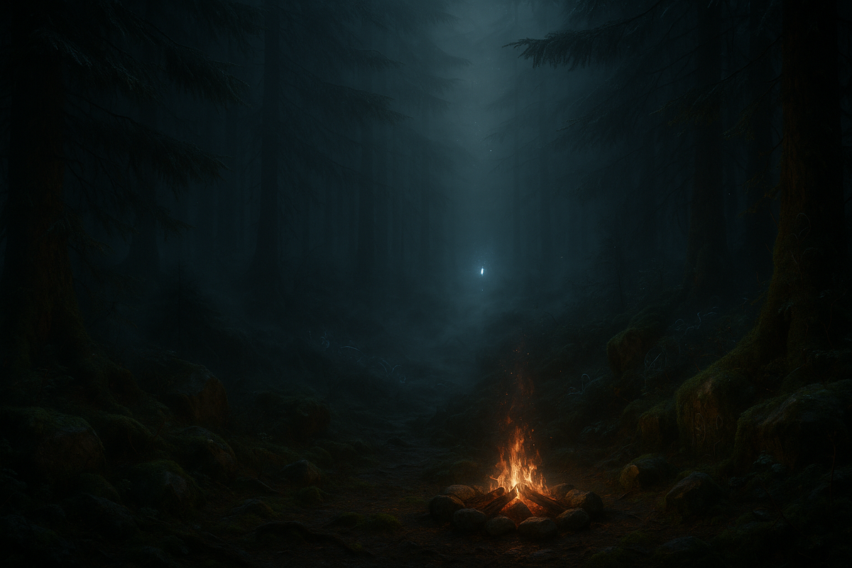 Она не ответила. Только наклонилась ближе к огню, как будто тот мог заслонить её от сказанного. Огонь потрескивал, в лесу шевелились корни, что-то мелкое пробегало сквозь листву. Влажный воздух был почти осязаем.