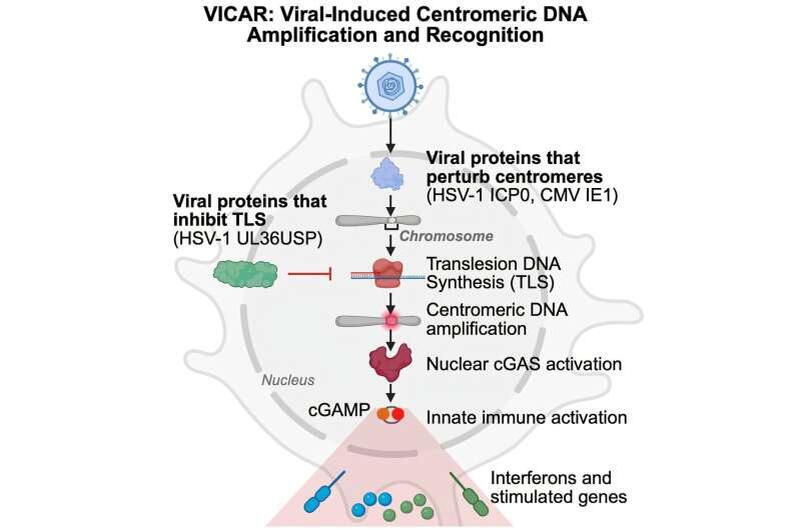 Xavier Lahaye et al, Centromeric DNA amplification triggered by viral proteins activates nuclear cGAS, Cell (2025). DOI: 10.1016/j.cell.2025.05.008