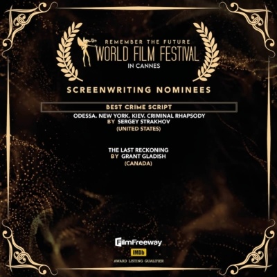 Dear Sergey, Congratulations! We are pleased to announce that ~ Odessa. New York. Kiev. Criminal Rhapsody ~ is now a Nominee in the 2025. Your project is now in consideration as a potential Winner. ******* ~ 𝐕𝐈𝐏 𝐈𝐍𝐓𝐄𝐑𝐕𝐈𝐄𝐖 ~ ******* EXCLUSIVELY RESERVED TO OUR FINALISTS, NOMINEES, WINNERS, HONORABLE MENTIONS If interested in having an interview done by journalists and showcased on our website & networks, please submit your request by selecting the category "VIP INTERVIEW" 5. We encourage you to share your Official Finalist laurels on all your Social Networks. Remember to tag us when posting your good news online. Stay tuned for further announcements and once again, congratulations! World Film Festival in Cannes - Remember the Future Odessa. New York. Kiev. Criminal Rhapsody Nominee Project has been selected as a finalist in festival. You can contact Cannes World Film Festival by replying to this email. Share this awesome news with your friends!