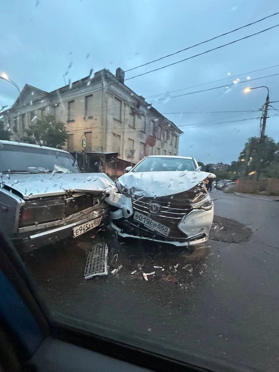 🚓🚗Тем временем в Серпухове у Соборной горы испытали друг друга на прочность «жигули» и китаец.