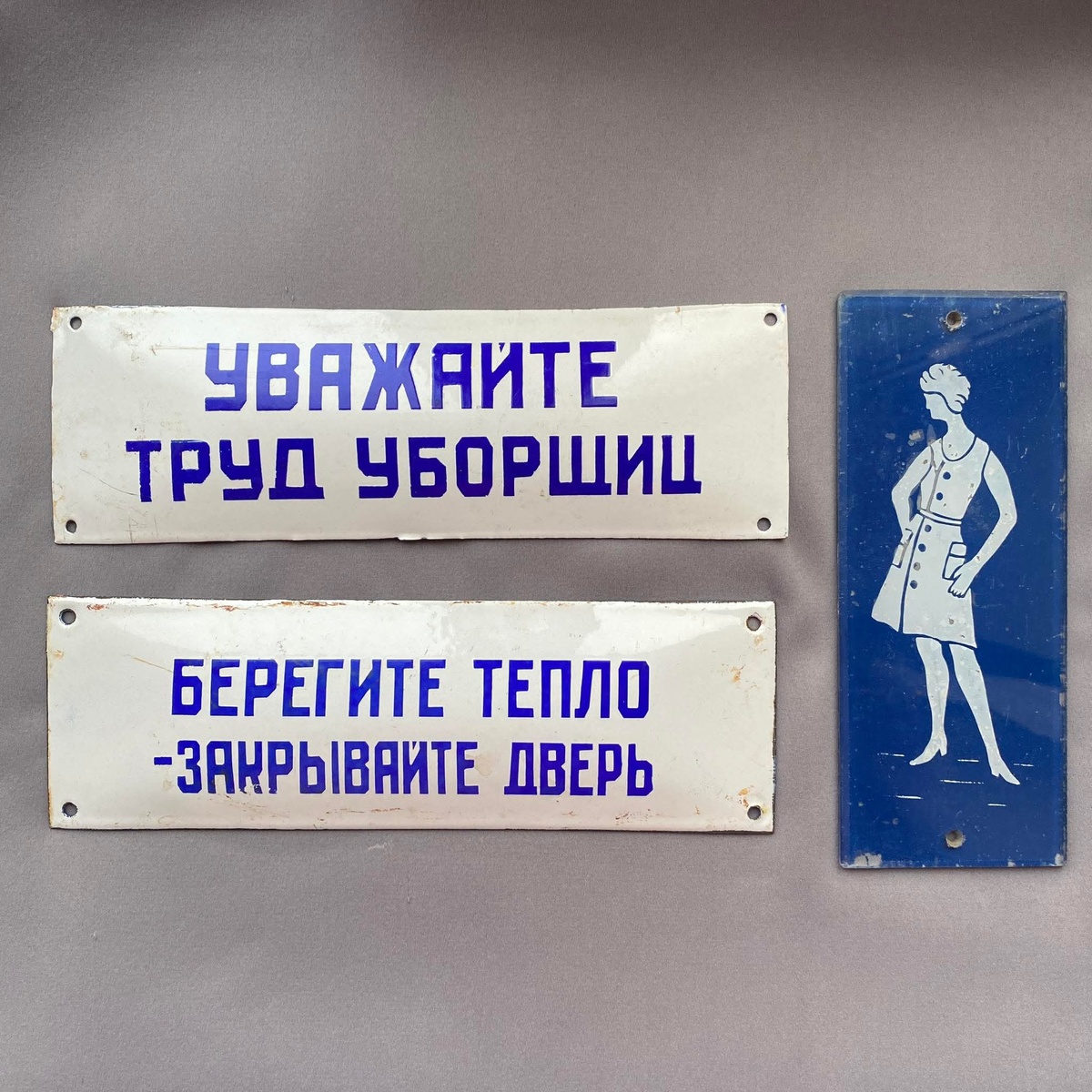А Сейчас дизайнеры с руками отрывают такие таблички — чтобы сделать на кухне маленький советский уголок или повесить в ванной «Дамскую комнату» в стиле «Служебного романа».