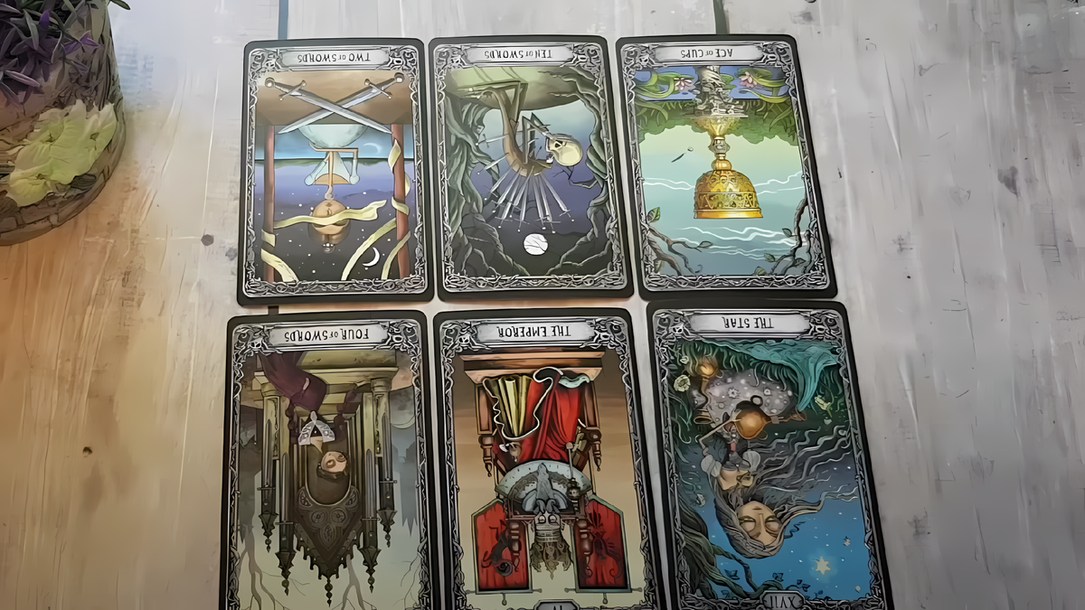 Привет, мои дорогие девочки! Это Анна, и сегодня у нас расклад с огоньком, который я назвала «Вызывайте санитаров, у мужика шок»! Мы заглянем в голову вашего загаданного мужчины, чтобы понять, почему он в таком состоянии, что хоть скорую вызывай, что его так шокировало, и что вообще с ним творится. Сразу выпадает карта, которая выдаёт его с потрохами, и, девочки, перед нами человек, который, как в старой детской песенке, «секретов не держу, я не шкаф, не музей». Двойка Мечей перевёрнутая и Паж Кубков перевёрнутый — это балабол, каких поискать! У него, похоже, словесное недержание, как будто язык без костей, и он выливает всё, что на душе, кому попало, как из прохудившегося крана. Он не умеет держать эмоции в себе, не знает, что такое выдержка, и, если у него проблема, он тут же бежит жаловаться, плакаться, как ребёнок, который уронил мороженое и требует, чтобы весь мир его пожалел. Этот мужчина — знатный спорщик, любит доказывать своё, даже если это полная ерунда. Скажешь ему, что небо голубое, а он будет кричать, что оно зелёное, просто чтобы поспорить, как будто от этого зависит его жизнь. Но это ещё не всё. Он самодовольный, девочки, как павлин, который распушил хвост и думает, что все должны им любоваться, но на деле там одни перья, а толку — ноль. Звезда перевёрнутая говорит, что он когда-то поймал свою звезду, возомнил себя королём Вселенной, и теперь несёт это звёздное знамя, как флаг, гордо задрав нос, хотя в голове у него каша, как в старой кастрюле. Он может быть вспыльчивым, как порох, жёстким, даже жестоким, говорить такие вещи, от которых уши вянут, как листья в засуху, а потом оправдываться: «Я же правду-матку режу, я же во благо!» Но эта его «правда» — как топор, которым он рубит всё вокруг, не думая о последствиях, как будто он один знает, как надо жить, а все остальные — дураки.