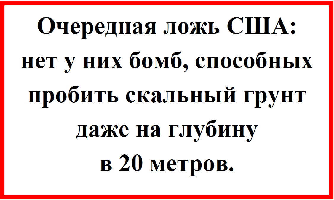 Очередная ложь США: нет у них бомб, способных пробить скальный грунт даже на глубину в 20 метров.
