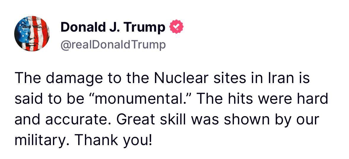 Trump claims his attacks inflicted ‘MONUMENTAL’ damage to Iran’s nuclear sites REMINDER: US officials say even dozen bunker-busting bombs CAN’T destroy Fordow