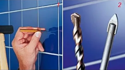 - Вам понадобятся: ударная дрель с плавной регулировкой оборотов двигателя; перфоратор (если у вас простая дрель без ударного механизма для сверления кирпича или бетона); малярный скотч; карандаш или ручка; стреловидное или алмазное сверло для работ по кафелю; сверло по бетону с победитовой напайкой.