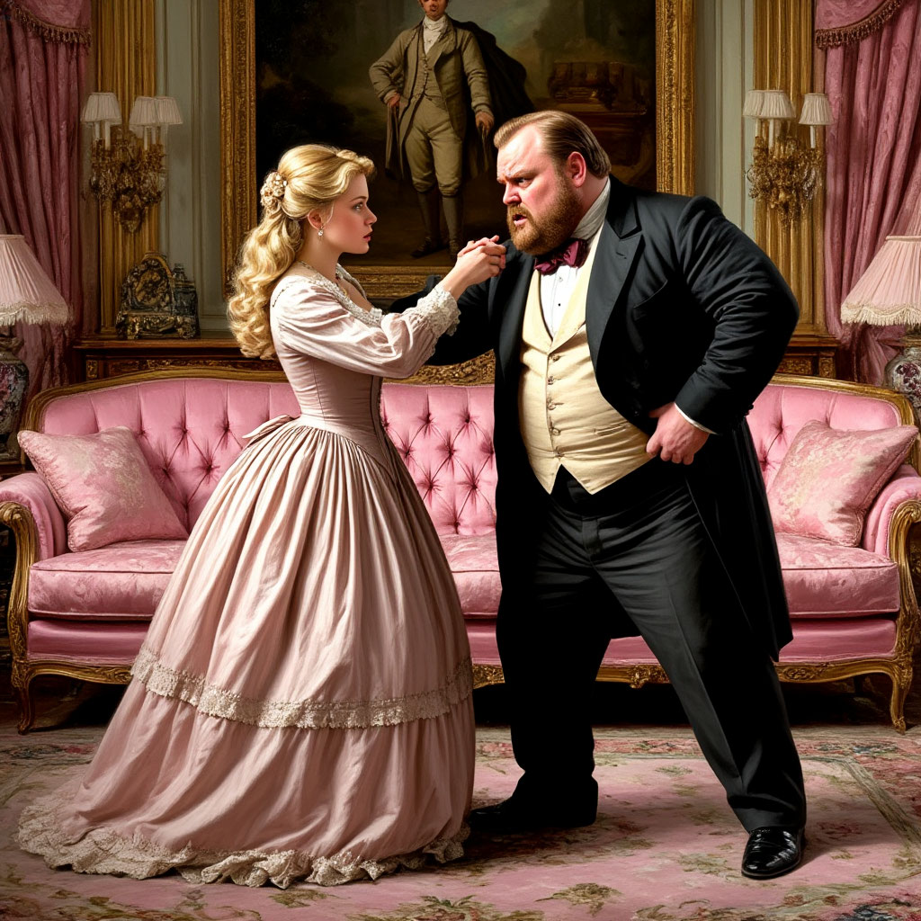 Князь встал, и довольно резво для своей комплекции обошёл меня, встав у меня за спиной и положил свои руки мне на плечи. Я даже сквозь ткань платья ощутила противную влажность и уже собиралась вскочить, скинув его потные ладони. Но князь неожиданно с силой придавил меня к стулу, и, наклонившись, и почти вплотную прислонившись к моему уху, начал шептать: