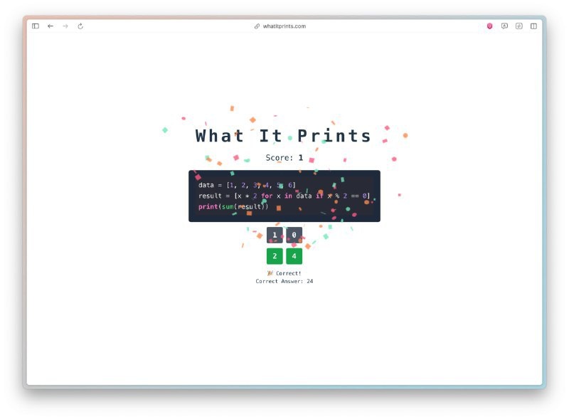 Качаем скиллы кодера: надыбали крутой тренажёр для быстрого буста понимания кода. Всё максимально просто — выбираешь язык (Python, Swift, JS, C++ и другие), проходишь задания, где нужно угадать, что выведет кусок готового кода. Практика — лучшее обучение: прокачиваешь логику, учишься читать чужие решения и подтягиваешься в реальных примерах. Пробуем здесь. Подробнее: https://hard-tm.su/threads/97298/ 🕹HARD-TM — Подписаться