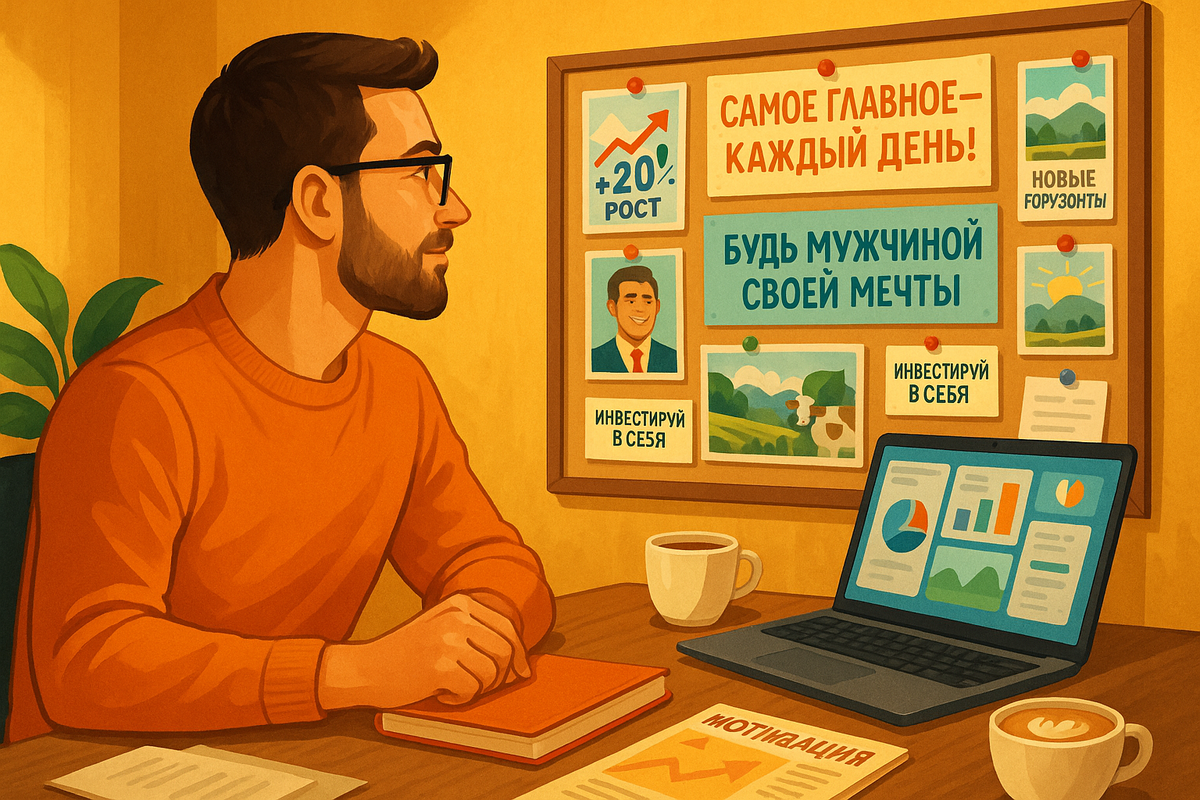Сколько раз вы говорили себе: «Надо бы сосредоточиться на главной цели» — и тут же погружались в текучку? Совещания, звонки, задачи, логистика, производство — день заканчивается, а стратегическая цель снова отложена. Всё потому, что она существует только в голове, теряясь в ворохе ежедневных дел. Решение — простое и мощное: ментальная доска успеха. Это визуальный инструмент, который помогает удерживать фокус, не терять мотивацию и каждый день двигаться в сторону своей мечты. Ментальная доска успеха — это визуальное представление вашего желаемого будущего: целей, состояний, достижений, к которым вы стремитесь. Это может быть: Но главное — это не просто эстетичный набор фото. Это навигационная система для ума, которая: Наш мозг устроен так, что лучше воспринимает и удерживает образы, а не абстрактные идеи. Когда мы регулярно видим визуальный образ своей цели: 📌 По сути, доска успеха делает вашу цель ощущаемой и реальной, даже если она пока только в проекте. Не "успех", не "развитие",