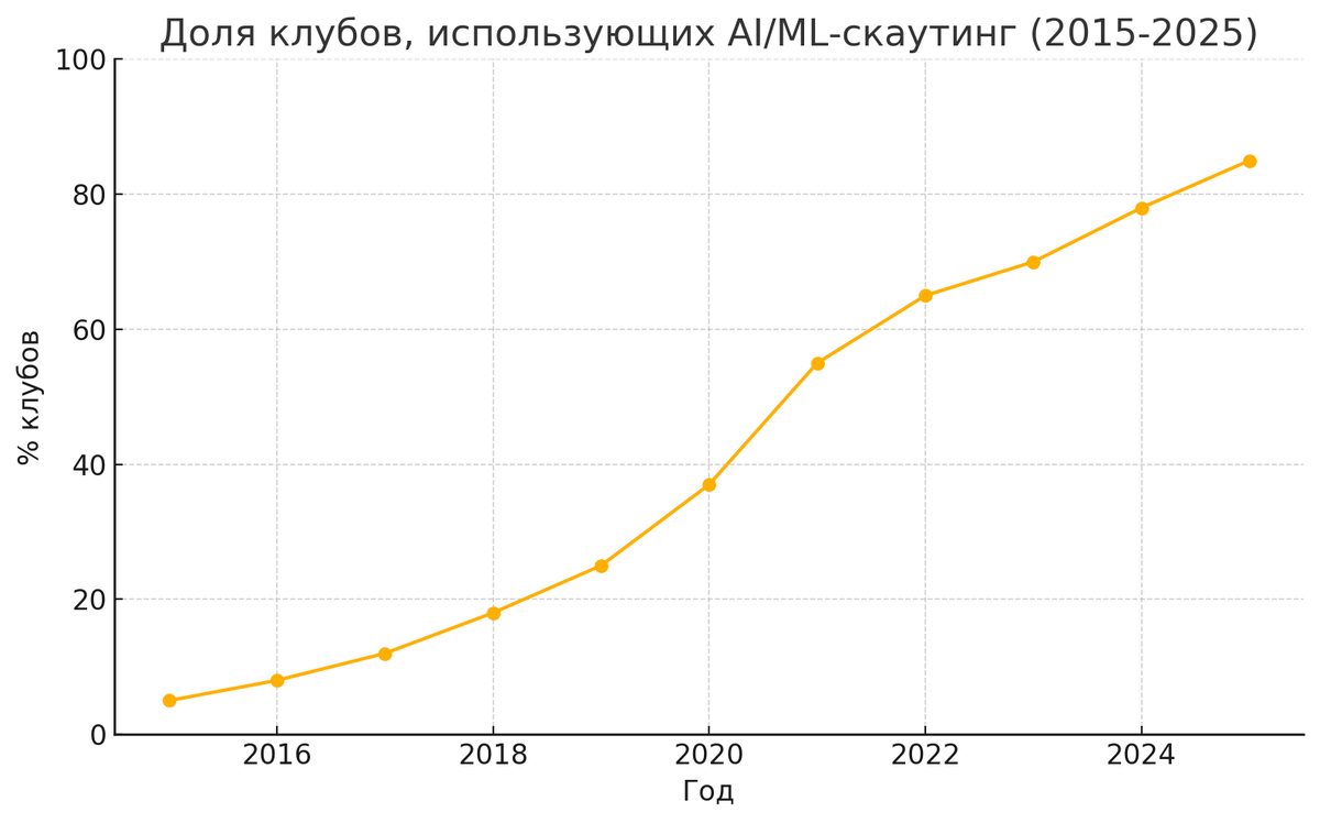 К концу 2010-х машинообученческие модели стали неотъемлемой частью скаутских отделов топ-клубов. Например, «Ливерпуль» при Юргене Клоппе использовал аналитический отдел во главе с Ианом Грэхэмом, который применял модели для оценки трансферных целей – так были выбраны Эндрю Робертсон и Мохамед Салах, чьи статистические профили идеально соответствовали стилю команды.