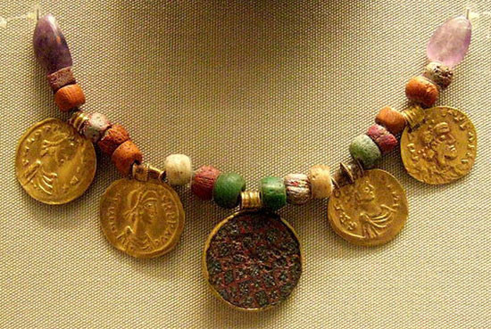 Для подобного рода украшений даже определение свое имеется. Называются они «нуммарные» — то есть изготовленные из монет или с монетами, включенными в украшения как часть дизайна. И история таких вещиц уходит корнями в глубокое прошлое. Ещё в Древнем Риме из монет было принято делать ожерелья и кольца. Специалисты считают, что всё дело в идеальности монеты. Её размер и форма просто созданы для ювелирного дела. Для наших предков такие украшения имели важное символическое значение. Они могли обозначать высокий статус владельца, его богатство или принадлежность к определенной социальной группе. В Византии, говорят, пекторали из монет ваяли на удачу. Пектораль — это такое нагрудное украшение, которое даже входило в защитную амуницию воинов. Коренные народы Северной Америки верили, что монета на шее защитит от отравления. Она должна якобы почернеть, если рядом окажется отравленная еда. Жители Венеции, путешествуя, надевали на шею золотой дукат с изображением лика Христа, который даровал