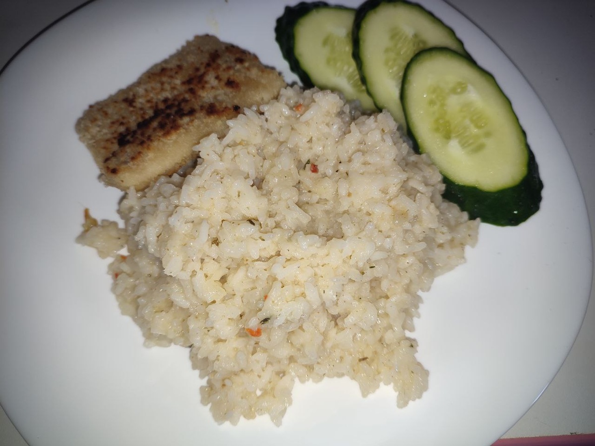 После с детьми пошли ужинать - готовила я рис, рыбные котлеты.