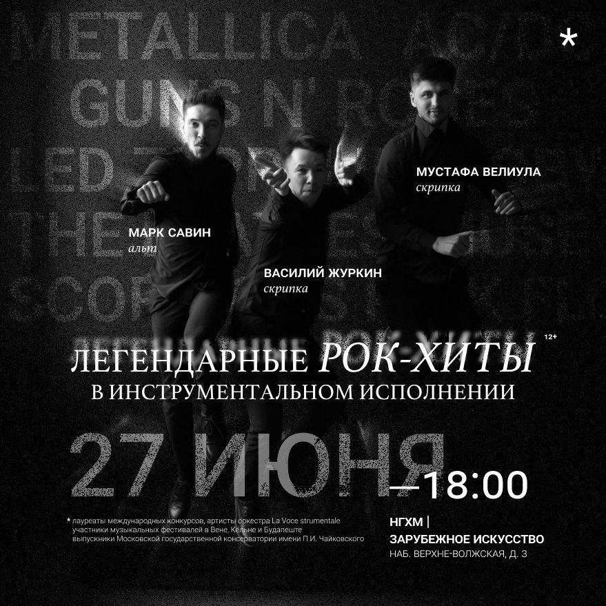 Рок-хиты в бальном зале Дома Сироткина Приглашаем вас на необычный концерт – в этот раз пространство старинного особняка на Верхневолжской набережной наполнится звуками рок-музыки. Metallica, Led Zeppelin, Guns N' Roses, Scorpions – самые известные шлягеры легендарных рок-групп прозвучат для вас в исполнении артистов оркестра La Voce strumentale, лауреатов международных конкурсов, участников музыкальных фестивалей в Вене, Кёльне и Будапеште, выпускников Московской государственной консерватории имени П.И. Чайковского: Василия Журкина (скрипка), Мустафы Велиулы (скрипка) и Марка Савина (альт). Приходите 27 июня в НГХМ|ЗАРУБЕЖНОЕ ИСКУССТВО (Дом Сироткина, Верхневолжская набережная, 3) насладиться инструментальным звучанием самых известных рок-хитов в окружении шедевров мастеров западноевропейского искусства. Начало в 18:00 🎟Купить билет по банковской карте vk.cc/chbdDc Ждем вас!