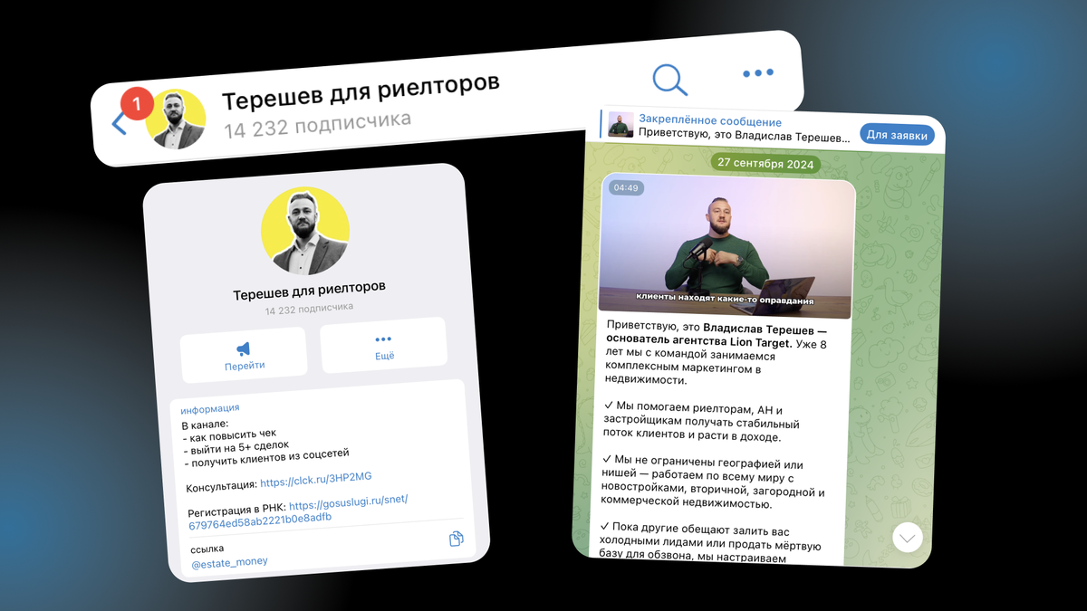 Я Владислав Терешев, CEO маркетингового агентства Lion Target. Веду Телеграм-канал Терешев для риелторов, где делюсь техниками и стратегиями, которые принесут тёплые заявки и продажи в сфере недвижимости.