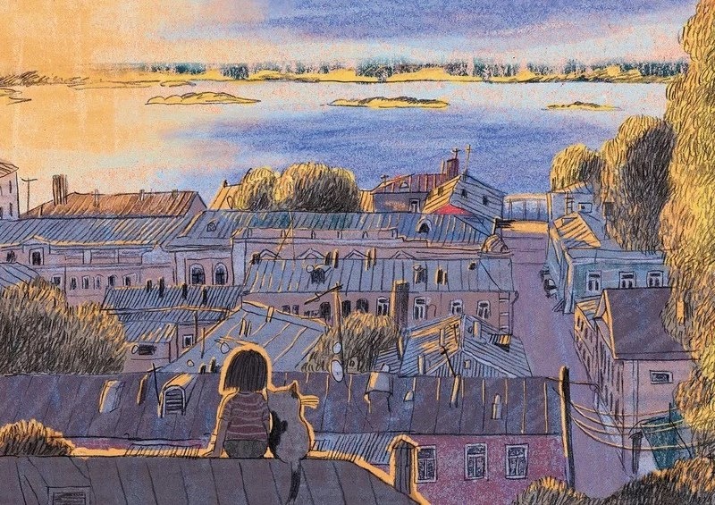 На первой странице обложки июньского номера журнала «Мир Музея»: Карина Милосердова. Мы на крыше мира. 2023. Смешанная техника. #мирмузея #обложкамирмузея