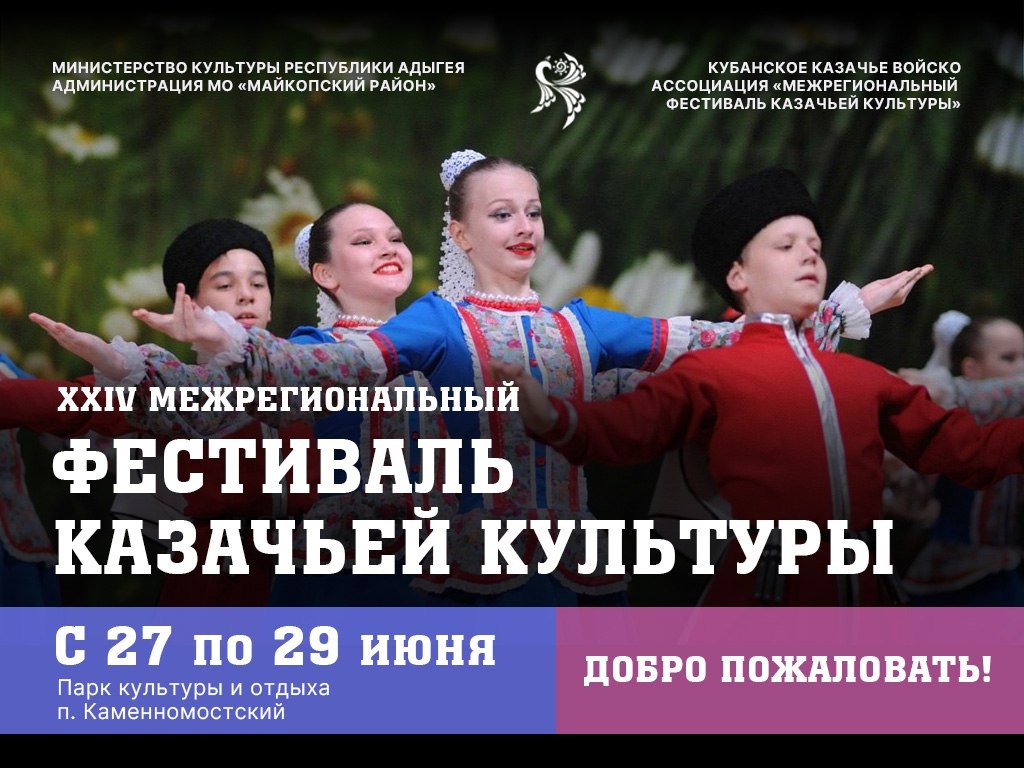 #Окей_афиша 🗡В Адыгее пройдет межрегиональный фестиваль казачьей культуры 34-й фестиваль, посвященный ⭐️80-летию Победы в Великой Отечественной войне, пройдет в парке поселка Каменномостского с 27 по 29 июня. В программе фестиваля: 🔴 выступления фольклорных казачьих коллективов 🔴 выставка-ярмарка изделий мастеров-ремесленников 🔴 казачья и национальная кухня 🔴 конкурс военно-патриотической песни среди фольклорных казачьих коллективов 🎉Принять участие в этом ярком событии могут все желающие. Это прекрасный шанс окунуться в мир казачьих традиций и обычаев, познакомиться с их наследием и насладиться выступлениями талантливых коллективов. Подробнее о мероприятии можно узнать по ➡️ ссылке. Подписаться | Окей, Адыгея
