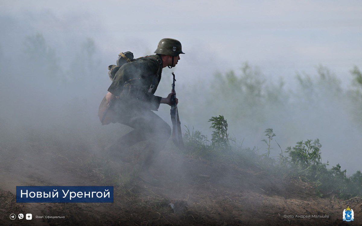 В Новом Уренгое и Салехарде прошли реконструкции событий Великой Отечественной войны. В газовой столице воссоздали один из боёв. В горсаду столицы округа – атмосферу 22 июня 1941, когда ямальские бойцы отсюда уходили на фронт. 🐻❄️ ЯМАЛ. Официально | Подписаться