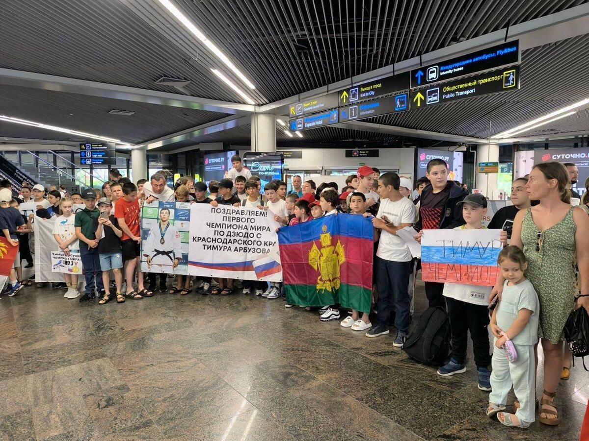 ➡️Накануне в аэропорту Сочи с казачьими песнями и караваем встретили кубанского дзюдоиста Тимура Арбузова.