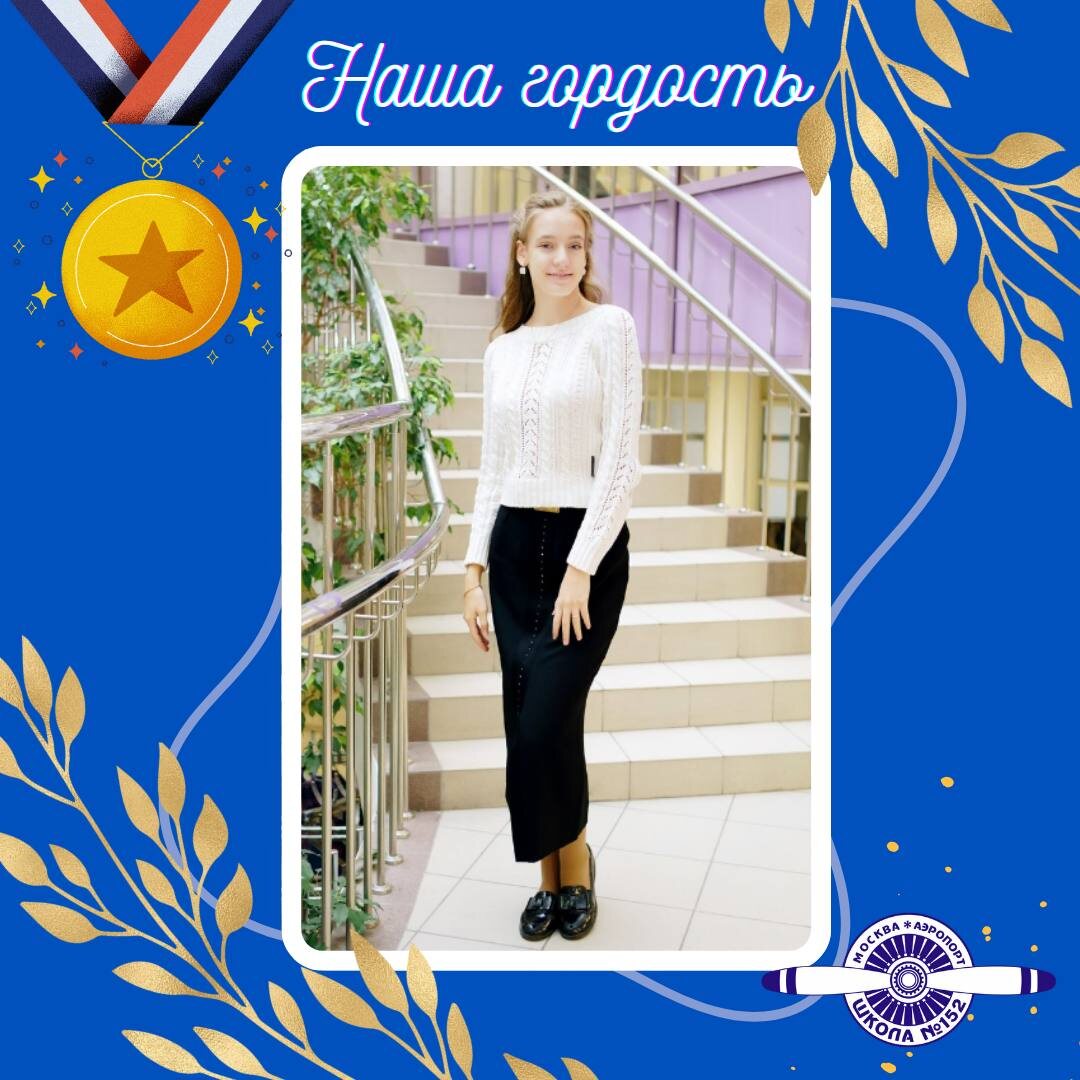 Гордость #Школа152 ⬇️ Виктория - выпускница ИТ-класса! 🥇Претендент на Золотую медаль 🌟Призёр муниципального этапа ВСОШ по МХК 🌟Призёр муниципального этапа ВСОШ по обществознанию 🌟Победитель муниципального этапа ВСОШ по истории, географии, экологии 🌟Призёр регионального этапа ВСОШ по экологии, истории, географии, МХК 🌟Неоднократный призёр заключительного этапа МОШ по филологии 🌟Призёр заключительного этапа олимпиады МАИ «Траектория взлета» 🌟Победитель конкурса «Интеллектуальный мегаполис. Потенциал» 🥇Обладатель Золотого знака ГТО Победитель - это не тот, кто всегда выигрывает, а тот, кто никогда не сдаётся - уверенно говорит Вика. 👏Поздравляем Викторию с высокими достижениями в учёбе! Желаем успехов, интересного и яркого будущего! #Школа152 #ДОНМ #ТалантливыеДетиМосквы #ШколаВоплощающаяМечты