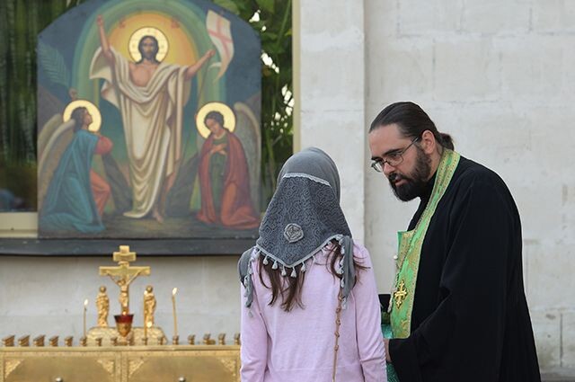 Было видно, что она в храме первый раз, озирается по сторонам, как в музее и не знает, что ей делать. Отец Михаил решил ей помочь и подошёл к ней: