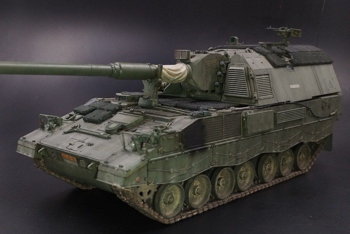 Panzerhaubitze 2000 Автор - Трифан Кирилл\Тиберий Meng, 1:35 "В 2047 году, во время осады главного Храма Братства НОД в Сараево, силы ГСБ неумолимо продавливали оборону противника. Братство было вынужденно поставить под ружье абсолютно все, что нашлось на этой проклятой земле. Во время очередного наката войска ГСБ обратили силы Братства в бегство-фанатики Кейна бежали, побросав оружие и технику. В одном из ангаров обнаружился привет 155-ого калибра из далекого 2020 года....бывшей голландской самоходке не суждено было стать молотом в руках Братства." Всем привет! Наконец руки дошли расширить линейку современных крупнокалиберных САУ. Менговский набор уже устал - пока это худшее, что от менга было в моих загребущих руках-плохо стыковалась корма (шов я до конца не вывел)))), пришлось уширять зазор в ленивце, тк траки не лезли, и почти полностью урезать основание ёжиковой брони на крыше корпуса, инача башня не вставала на место. Серый пластик же показал себя хорошо-проклятий и обтекани
