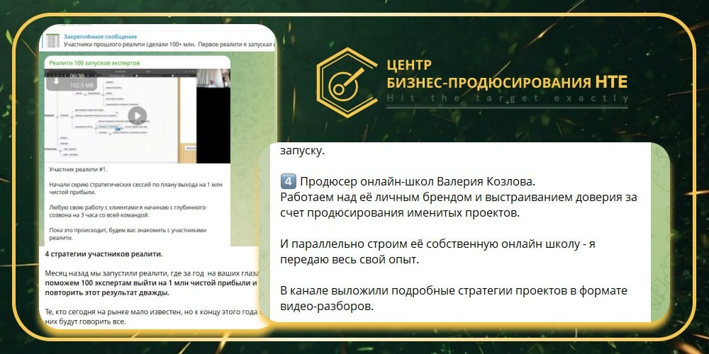 Центр HTE выходит на новый виток развития — нас продюсируют! Один из топовых наставников инфобизнеса запустил стратегическое реалити: цель — за год вывести 100 экспертов на стабильную прибыль от 1 млн рублей и помочь им повторить этот результат снова. 📌 В числе участников — и наш руководитель Центра бизнес-продюсирования HTE Валерия Козлова. Но на этот раз — не в роли наставника, а в роли эксперта, которого продюсируют. Да, наш Центр продюсирования сам находится в продюсировании. Почему это важно? Потому что: — мы не только создаём результат для клиентов, — мы растём сами и усиливаем свои позиции на рынке. В реалити фокусируемся на двух задачах: 🔘 Строим сильный личный бренд, за которым стоит команда и конкретные кейсы. 🔘 Создаём онлайн-школу Центра HTE, где будет передаваться весь наш опыт и система «под ключ» для экспертов и команд. 🔥 Это — не просто участие. Это развитие Центра как проекта и масштабирование нашей миссии: делать бизнес сильных экспертов прибыльным, систем