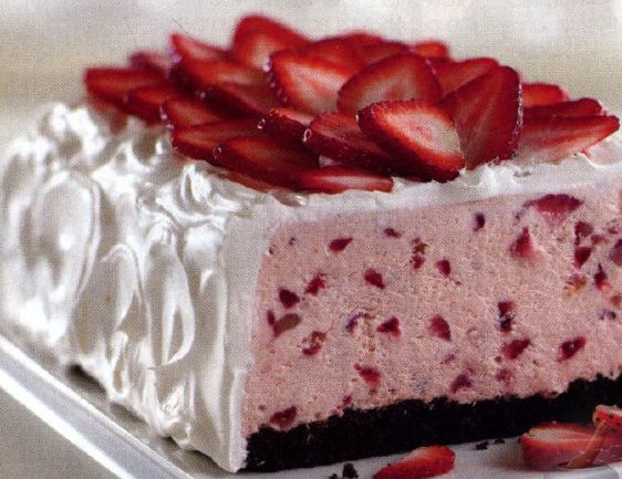 Этот десерт в семье Алены Васнецовой всегда делают с большим удовольствием, особенно в сезон клубники. Готовится элементарно, а вкус - отменный. И если на пороге гости, то стыдно за такое блюдо точно не будет! Ингредиенты: 600-700 г клубники, 1 банка сгущенного молока, 60 мл лимонного сока (примерно 0,5 лимона), 200 г взбитых сливок, 8 шт. (80-100 г) шоколадного печенья (типа «сэндвич»), 20 г (1 ст. л.) сливочного масла. Клубнику тщательно моем, очищаем от чашелистиков, нарезаем и разминаем в миске вилкой. Несколько штук оставляем для украшения. Выжимаем сок из половинки лимона. Перемешиваем клубнику со сгущенным молоком, лимонным соком и примерно двумя стаканами взбитых сливок (часть сливок оставляем для украшения). Для этого рецепта можно взбить самим охлажденные жирные сливки или взять готовые. Затем выкладываем смесь в прямоугольную форму, покрытую фольгой. Печенье измельчаем, перемешиваем с размягченным маслом и выкладываем сверху на сливочно-клубничную массу. Слегка придавливаем