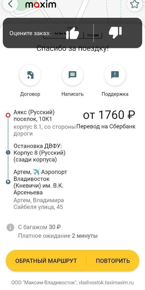 Еще одна история с поездкой на такси, только в этот раз с хамством столкнулась студентка. Она заказала такси «Максим» от корпуса 8.1 ДВФУ до аэропорта. Приехал Toyota Prius, и сразу все пошло не так. Водитель встал у корпуса 5.1, который далеко от нужной точки, включил платное ожидание. Когда удалось объяснить где его ждет пассажир, он добавил в счет 115 рублей. Девушка, не желая спорить и вступать в конфликт с мужчиной, заранее оплатила и это, и основной тариф — 1760 рублей. Высадить пассажирку водитель решил у въезда в аэропорт, заявив, что "въезд платный". Но на стенде написано, что первые 15 минут не оплачиваются. В итоге, девушка с чемоданом 26 кг и двумя сумками, пошла пешком. Возможно покажется, что идти не далеко, но недавно она перенесла болезнь, а с точки высадки идти пришлось вдоль дороги. — Впервые столкнулась с такой манипуляцией и ложью водителя. Сказал, что нет бесплатных минут в аэропорту и нагло за свою же оплошность, потому что не прочитал описание заказа, добави