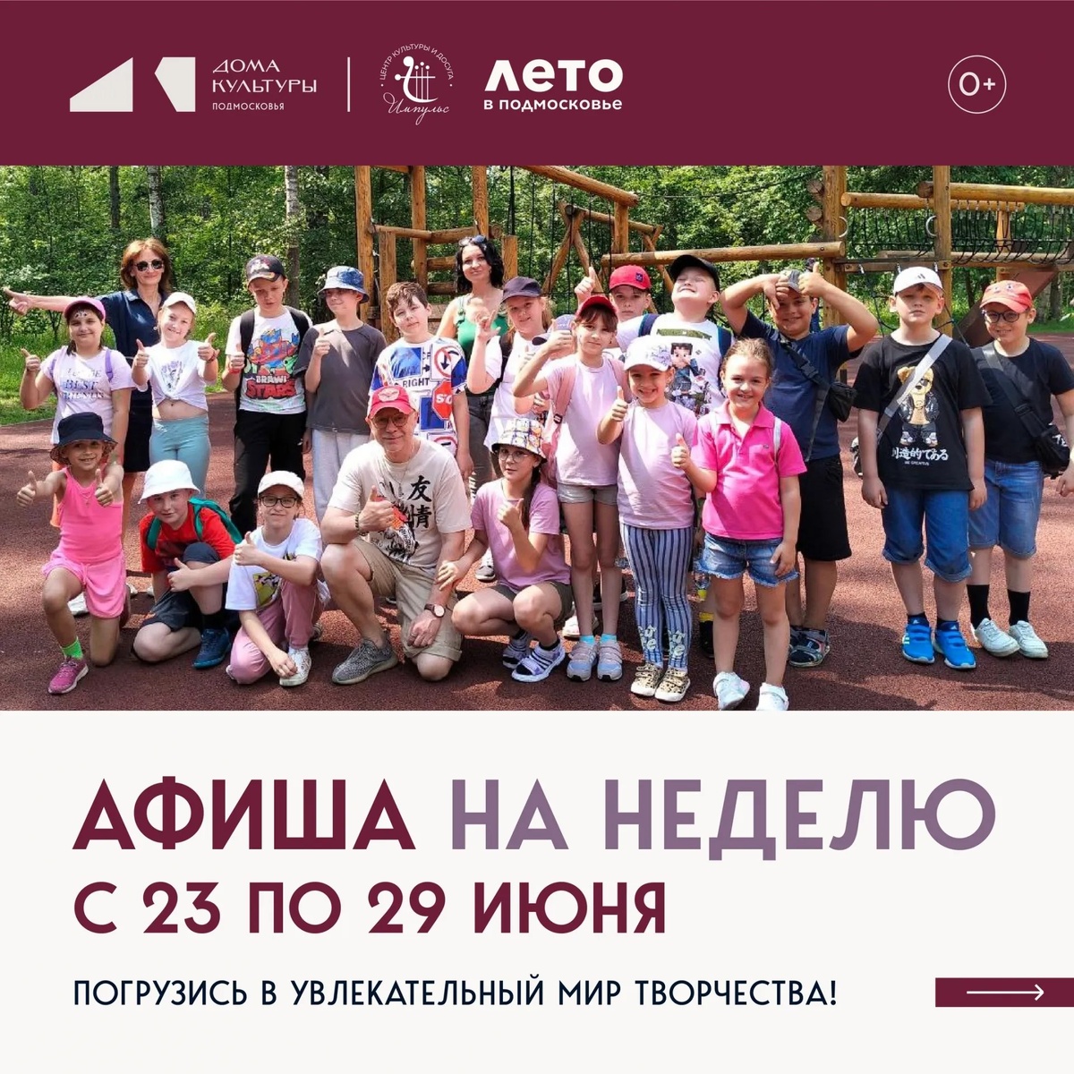 Дома культуры городского округа Домодедово приглашают всех на свои мероприятия! Скорее смотри, что ждёт тебя в период с 23 по 29 июня!🌸😍