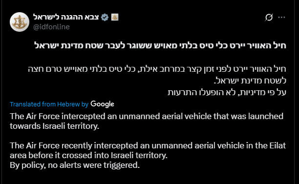 IDF intercepts UAV hurtling at top Red Sea resort Eilat