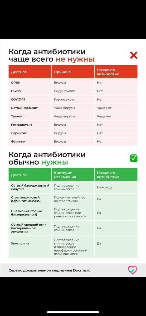 Как отличить вирусную инфекцию от бактериальной? Один из самых частых вопросов, который слышат врачи: Это вирус или бактерия? От ответа зависит, нужны ли антибиотики или организм справится сам. Давайте разберемся, как отличить эти инфекции и когда бежать к доктору👩⚕️ 🦠Вирусы – самые частые «гости» в детском организме. Они вызывают ОРВИ, грипп, кишечные инфекции и другие заболевания. Вот основные признаки, которые помогут вам заподозрить вирусную природу болезни: ✔️Типичные симптомы вирусной инфекции ⭐️Резкое начало - Ребенок может «заболеть за час»: утром был активен, а к вечеру – температура и слабость ⭐️Температура (37,5–39°C) - Держится 2–4 дня, затем снижается ❗️Важно: при гриппе может подниматься до 40°C с первого дня. ⭐️«Катаральные» явления - Насморк (прозрачные выделения из носа), - Чихание, - Покраснение глаз (иногда с конъюнктивитом), - Сухой кашель (может стать влажным позже). ⭐️Дополнительные признаки - Головная боль, - Ломота в мышцах (при гриппе), -