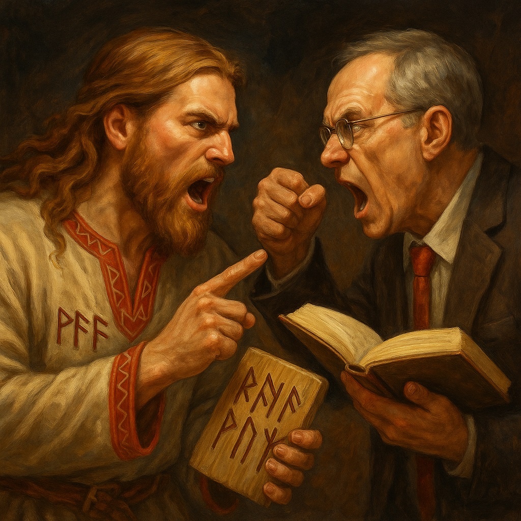 Поздняя пятница, подвальный бар. За одним столом хлопают кружками бородатые рунисты — мешочки с резами под кожаными браслетами, восторженные искры в глазах. За другим — скептики с остроточенными бровями, блокнотами и неизменным двойным эспрессо без сахара. Между ними на дубовой доске — горсть буковых рун. Кто-то достаёт Феху и шепчет о «денежном канале», скептик вздыхает и достаёт выписку из банка: «Покажи разницу на счёте до и после». Слова превращаются в кинжалы, а воздух пахнет то смолой северных мифов, то раскалённым сарказмом. Вопрос висит над кружками: чем закончится спор — горячей дискуссией или интеллектуальной мясорубкой?