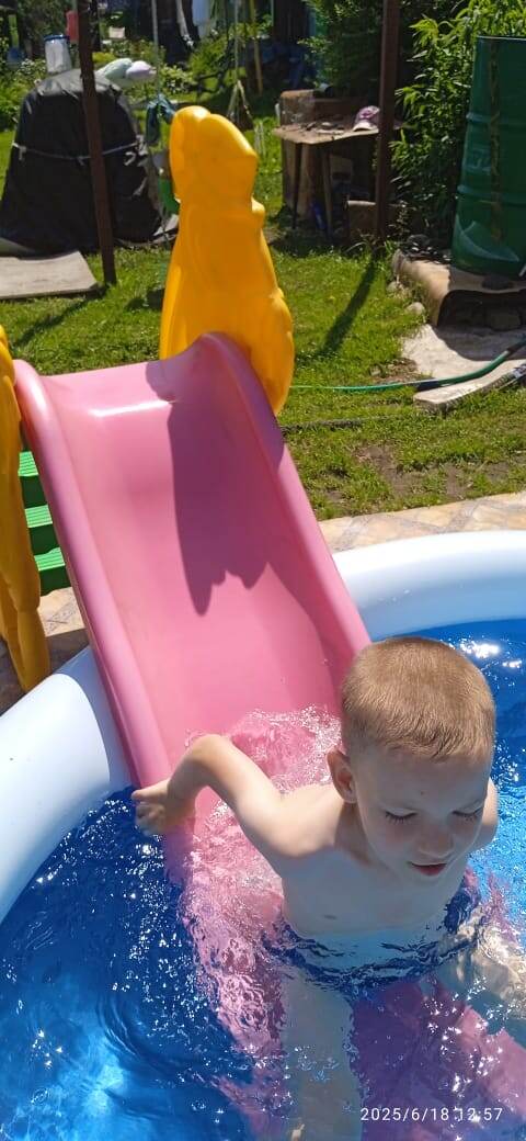 Прошедшая неделя порадовала нас тёплыми и даже жаркими днями, когда температура поднималась до 34 градусов! На работе и дома спасались кондиционером. Без него совсем тяжко. А Саша на даче плавал в бассейне. И играл водяными пистолетами. Но помимо отдыха, сын помогал дедушке и бабушке на даче. Его трудовой день состоял из сбора чеснока, охоты на колорадского жука и сбора ягод, а также полива грядок. На даче как раз началась пора клубники, и удалось собрать несколько маленьких вёдер этих сладких ягод. Нам досталось одно из них. ☺️ Ягода очень сладкая и вкусная. Всё ведро съели за вечер. Каждая ягодка — это маленький вкус лета! Моя же работа прошла в архивах, где, к сожалению, нет возможности пользоваться связью, и дышится довольно тяжело. Но на этой неделе я ожидаю меньше времени проводить в этом закрытом пространстве, и это уже само по себе радует — возможность хотя бы иногда смотреть в окно и видеть солнечный свет ободряет. В выходные мой муж и сын отправились на прогулку,