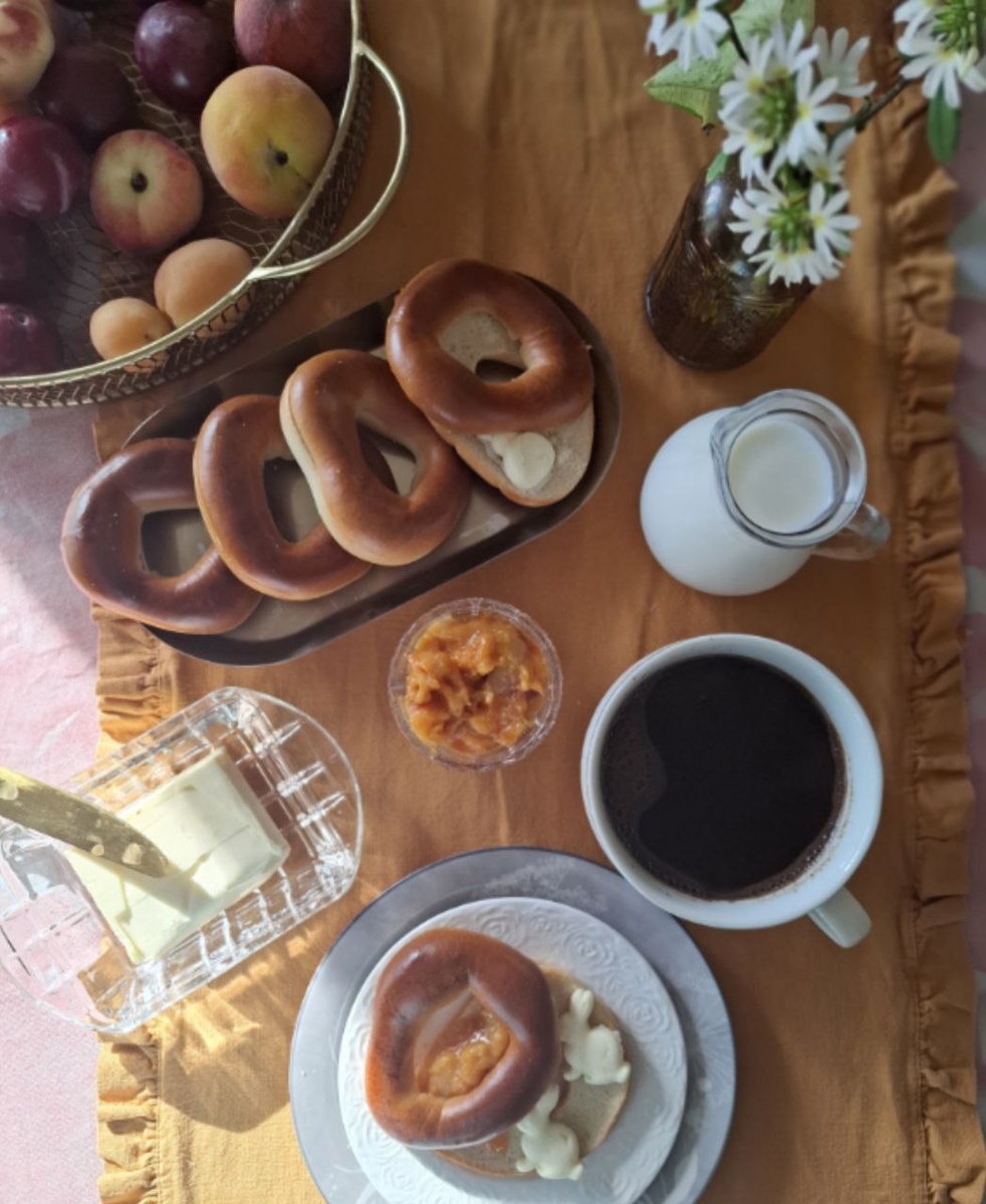 Аромат детства — вкус утреннего чуда Бывало такое раннее утро, когда просыпаешься от ласкового запаха корицы и свежеиспечённого хлеба? Утро, наполненное теплом бабушкиных рук и мягким светом солнца, струящимся сквозь старые окна. Я помню эти дни до сих пор, словно они были вчера... Очередная зима, пурга кружится за окном, покрывая деревню пушистым одеялом снега. В такую погоду хочется лишь одного — укутаться в плед и согреться чашечкой горячего напитка. Но бабушка уже давно всё предусмотрела. Слышу её шаги на кухне, тихий стук крышки кофейника и характерный запах свежезаваренного какао. А потом она появляется передо мной с широкой улыбкой, держа в руках дымящуюся чашечку ароматного какао и тарелочку сладких румяных баранок, щедро намазанных сливочным маслом и домашним вишнёвым вареньем. Их поверхность блестит янтарём и манит попробовать кусочек. Сижу на подоконнике, смотрю на мир за стеклом, слушаю мерное потрескивание углей в печи и ощущаю, как тепло разливается внутри меня вместе