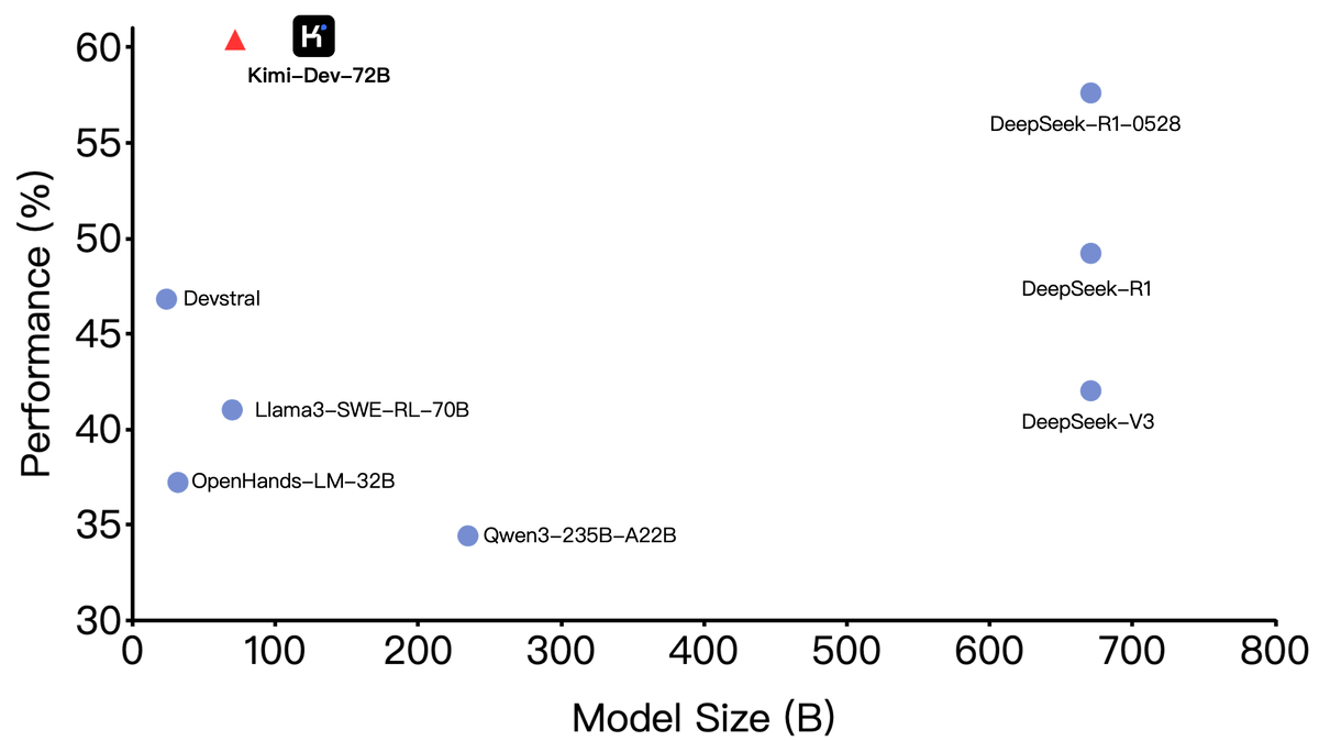 Компания Moonshot AI выпустила модель Kimi-Dev, которая работает как настоящий разработчик: анализирует проблему, находит нужные файлы, вносит правки и прогоняет тесты. Главное отличие Kimi-Dev от конкурентов — это её подход к обучению и работе. Она не просто генерирует код, она имитирует весь процесс исправления бага, как это делает живой разработчик. На известном тесте для программирующих нейросетей, SWE-bench, она обошла все существующие открытые модели и заняла первое место. Но цифры — это скучно. Интереснее то, как она это делает. Представьте себе ИИ, который получает "награду" не за то, что написал красивый код, а только если этот код реально починил программу и не сломал ничего другого. Именно так и учили Kimi-Dev. Разработчики создали для нейросети специальную "песочницу" на основе Docker. Модель брала реальную задачу из открытого репозитория, пыталась написать для неё исправление (патч) и запустить тесты. Если тесты проходили успешно — молодец, получай конфетку (в виде полож