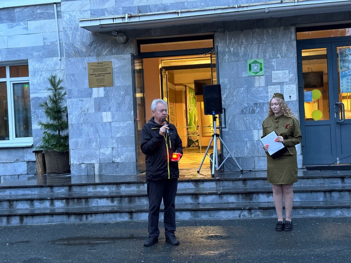 Студенты и преподаватели почтили память Защитников Отечества, сражавшихся в Великой Отечественной войне. У главного корпуса вуза были зажжены свечи памяти... В этот значимый день мы чтим память тех, кто отдал свои жизни за нашу Родину, за её свободу и независимость. Мы склоняем головы в благодарности перед героизмом ветеранов, чья храбрость и стойкость помогли нам выстоять и защитить нашу страну. Их подвиги вдохновляют нас на новые свершения и напоминают о силе духа и единстве. Пусть их мужество будет для нас примером, а их жертвы — напоминанием о ценности мира и свободы. Мы всегда будем помнить и чтить их вклад в наше общее будущее.