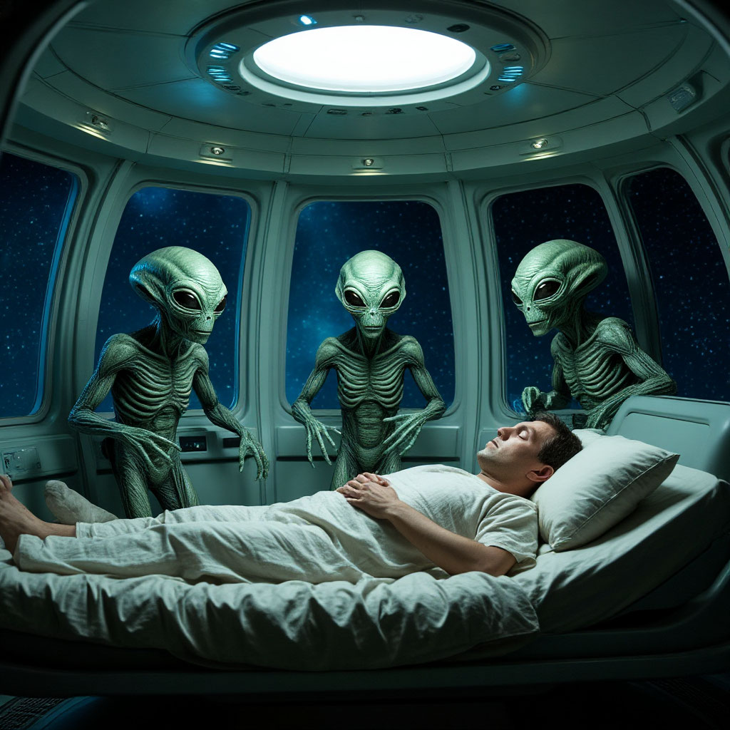 Внезапно Джон почувствовал сильное головокружение. Последнее, что он запомнил — это яркий свет, который ослепил его, и странное ощущение невесомости. Когда он пришел в себя, вокруг не было ни ранчо, ни скота, ни даже земли. Он находился в каком-то помещении с прозрачными стенами, а вокруг плавали существа, которых он никогда раньше не видел.