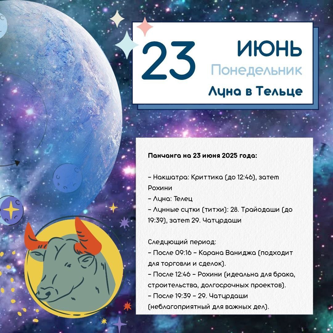 1️⃣. До 19:40: Карана: Ваниджа. Благоприятна для коммерции, сделок, переговоров, начала проектов, связанных с обменом (информацией, товарами, услугами). Хорошее время для практических, материальных дел, особенно под Луной в Тельце.