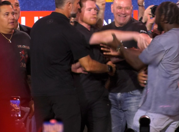Мексиканец Сауль Альварес и американец Теренс Кроуфорд сцепились во время очередной битвы взглядов. Соперники повздорили, стоя лицом к лицу, и несколько раз толкнули друг друга. Охранники и находившийся с бойцами на сцене промоутер Дана Уайт предотвратили дальнейшее развитие конфликта. Напомним, поединок между абсолютным чемпионом мира во втором среднем весе Альваресом и Кроуфордом, который ради этого боя поднялся на две весовые категории, состоится 13 сентября в Лас-Вегасе (США, штат Невада). 20 октября «Канело» и Теренс провели первую совместную пресс-конференцию. Кроуфорд может стать первым боксером, которому покорится звание абсолютного чемпиона в трех весах.