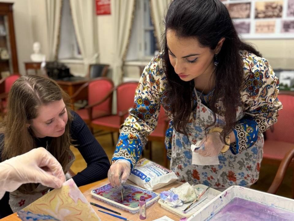 Нескучные каникулы наших учителей 🎨В музее Московского образования наш учитель начальных классов Раиса Тагиева провела для молодых учителей необычный мастер-класс по рисованию в технике эбру. Раиса Фикратовна является участником сразу двух проектов Московского Дома учителя "Классный руководитель" и "Наставник", где осуществляется деятельность по поддержке молодых учителей города Москвы. 🖌Эбру – это восточная методика рисования на воде с последующим переносом изображения на бумагу или другую твердую поверхность. Эбру имеет тысячелетнюю историю и возникло в Турции, где мастера передавали свои секреты из поколения в поколение. 👍В некоторых странах эбру используется как метод арт-терапии для снятия стресса и улучшения эмоционального состояния. #ДОНМ #Школа1347