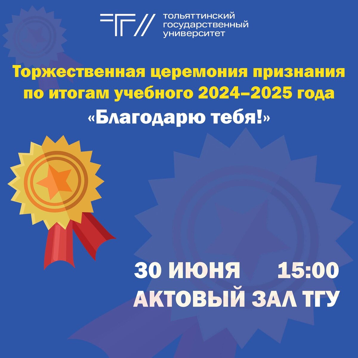📢 В Тольяттинском госуниверситете состоится торжественная церемония признания по итогам учебного 2024-2025 года «Благодарю тебя!»