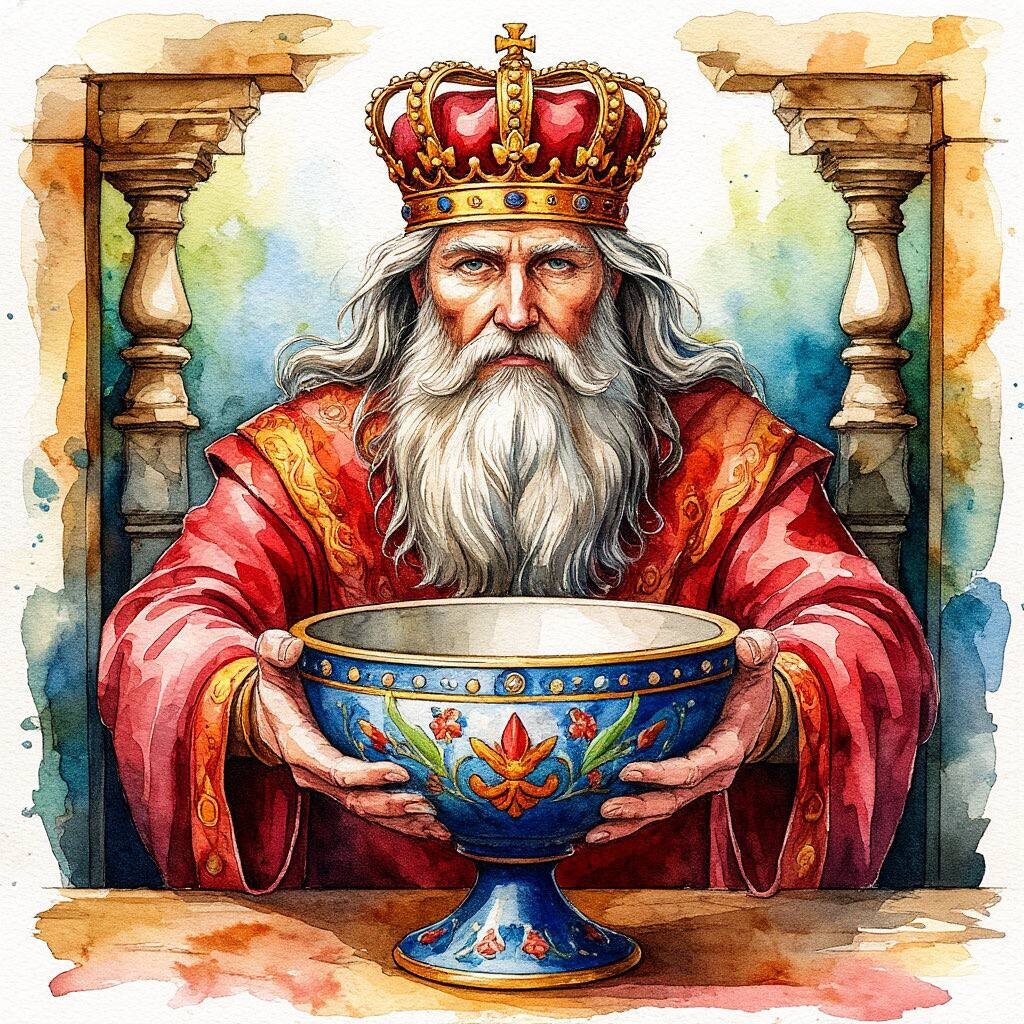 Король Чаш — это карта, которая подчеркивает важность эмоций, интуиции и поддержки. Она побуждает нас быть открытыми для чувств и заботиться о других, сохраняя при этом собственную эмоциональную стабильность.