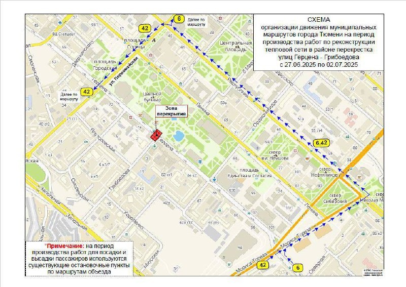 Изменены сроки перекрытия движения по улице Герцена. Работы по реконструкции теплосети теперь пройдут с 27 июня по 2 июля 2025 года. Маршруты №6 и №42 изменят маршруты, объезжая перекрытый участок.
