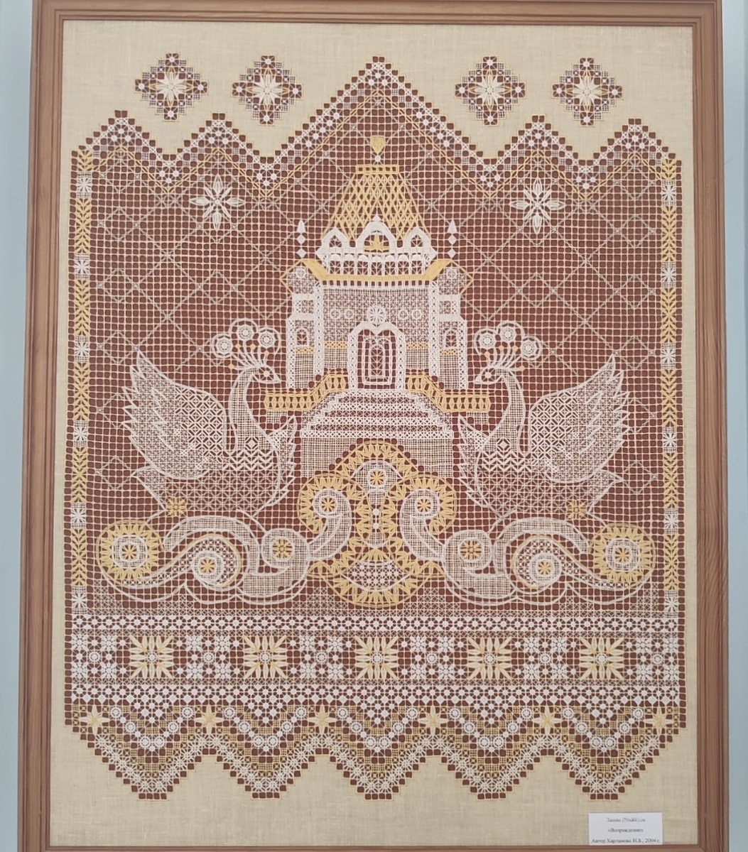 Сегодня мы рады познакомить вас с уникальным произведением искусства — панно "Возрождение", созданным в 2004 году. Этот шедевр стал результатом 150 часов кропотливой ручной работы лучших мастеров ЗАО Гипюр и выполнен с любовью и вниманием к деталям.
