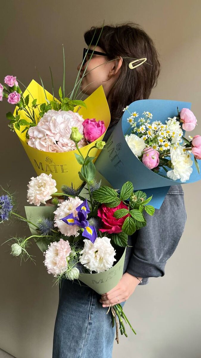 Неделя только началась, а мы уже собрали для вас яркую подборку! ❤️🔥☀️ Скорее лови свой букет, пока все не разобрали 😉 💐 в голубом 1950.- вместо 2350.- Пион/диантус/танацетум 💐 в желтом 1650.- вместо 2100.- Пион/гортензия/диантус/берграсс/малина 🌿 в зеленом 2000.- вместо 2450.- Эустома/эрингиум/нигелла/роза Хот Спот/ирис/малина Для заказа: @mateflowers_bot