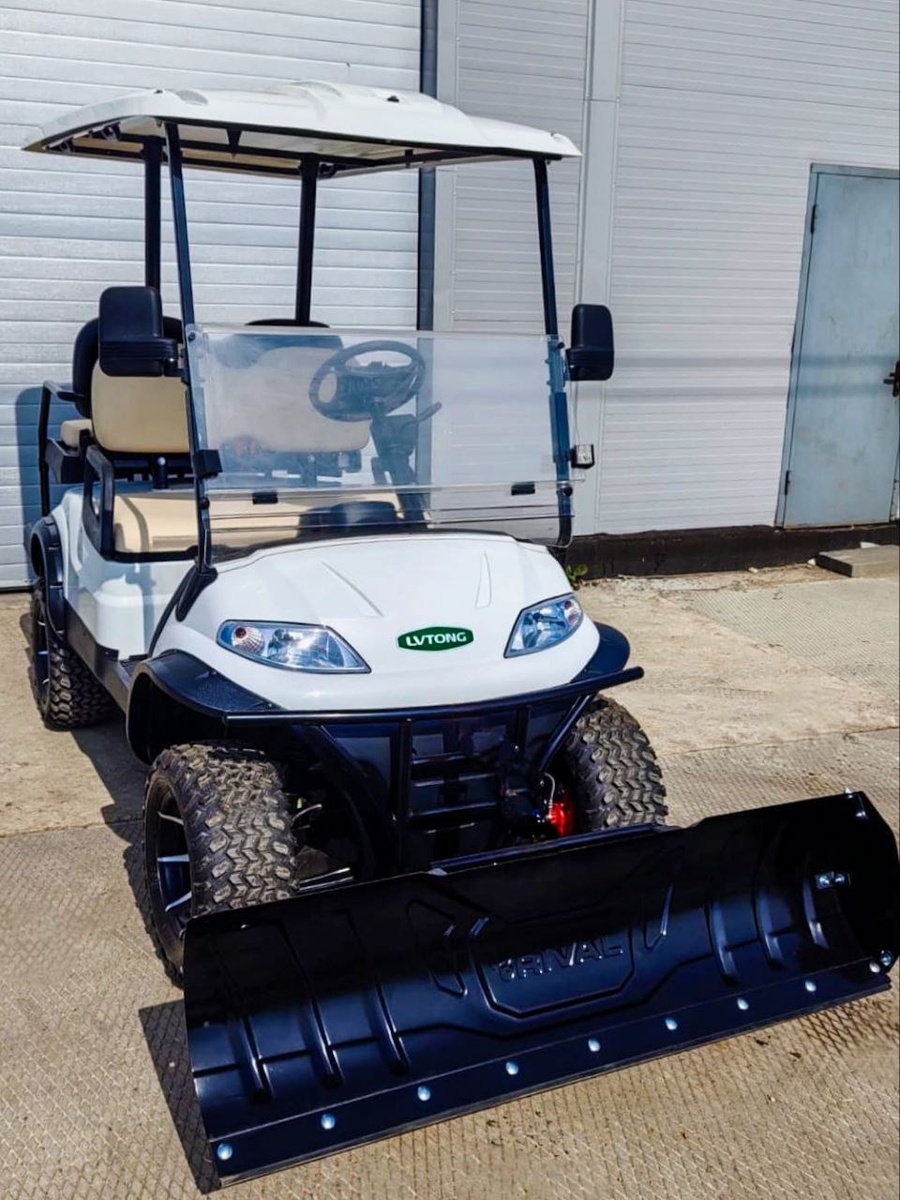 На этот раз по желанию клиента внедорожная версия была дооснащена отвалом для уборки снега. Теперь этот универсальный помощник готов не только к летним прогулкам, но и к зимним испытаниям.